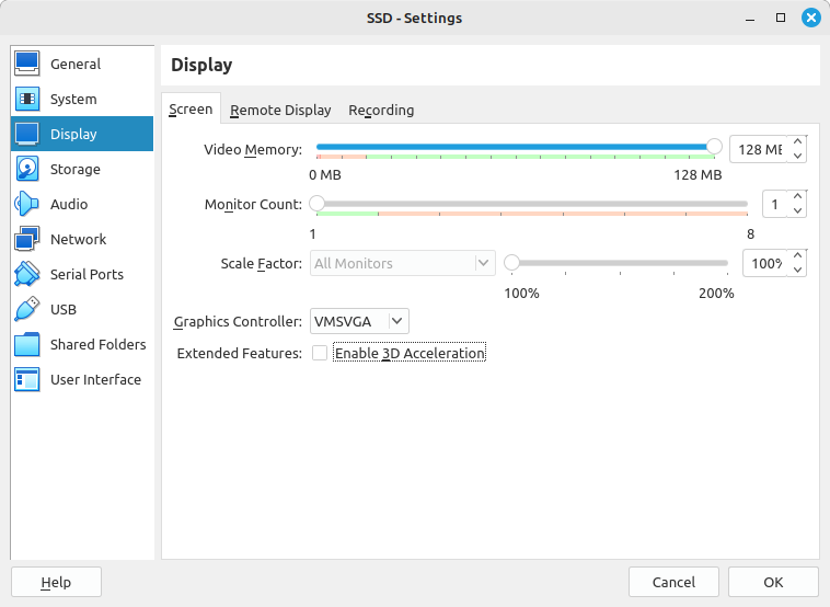 Display SettingsTo prevent black screens change the VirtualBox graphics controller to "VMSVGA". Do this by opening up the settings for your VM and select Display -> Screen.